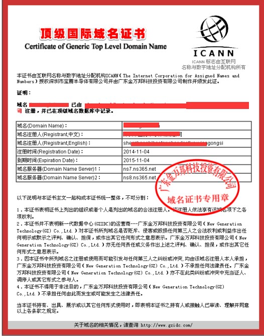 说明:域名由我司代注册无需提供。如在其他平台注册,请联系其他平台。