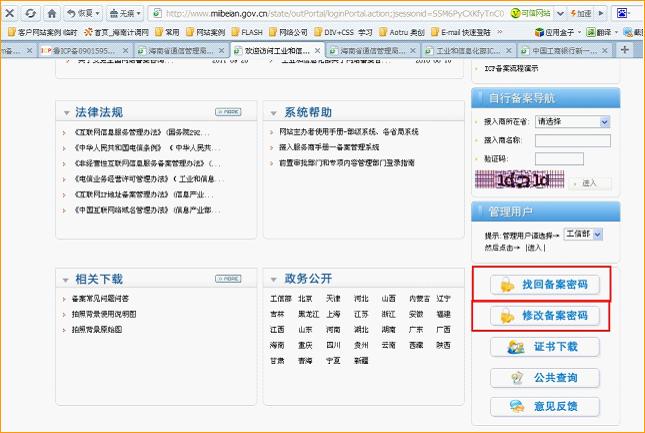 http://www.miitbeian.gov.cn 备案查询 首页—— 右下角 —— 找回备案密码 —— 选择您备案号的所属地区