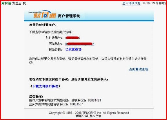说明:申请财付通即时到帐接口的过程与此相差不大,申请时可参考