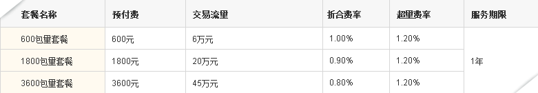 可选套餐: 单笔阶梯费率 600套餐 1800套餐 3600套餐