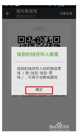 进入面对面收钱界面,首次使用会弹出提示框,点击“确定”。