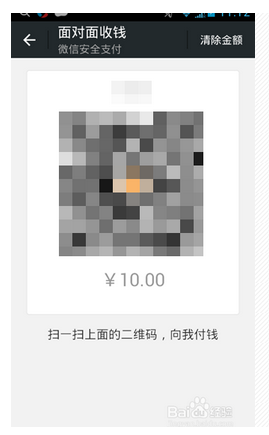 生成的二维码可直接进行支付,为了方便对方付款可以自己填写收款金额,点击右上角的“设置金额”。
