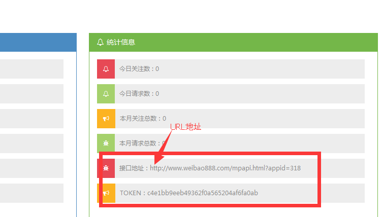 登录微宝典平台 www.weibao888.com 点击带齿轮的地方 看到控制台 然后将滚动条下拉 右下角即可找到URL和TOKEN