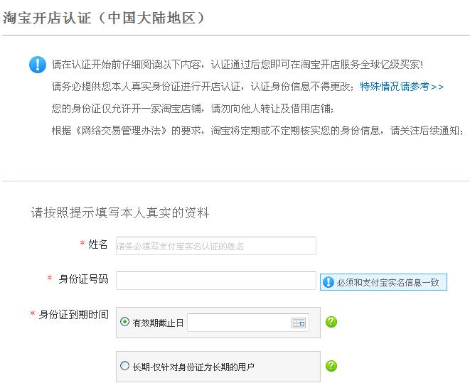 店主需提供本人身份证正、反面照片包括证件到期时间,另外还需店主提供联系电话、联系地址,以及本人手持身份证清晰上半身照片并交纳1000元的店铺保证金。如日后店铺不想继续经营保证金可以解冻退回店主账户。