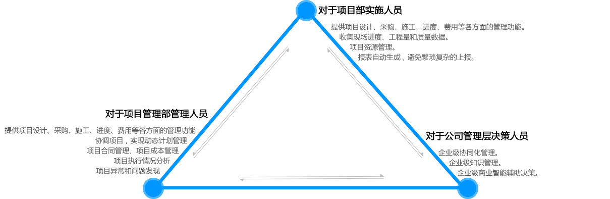 产品涵盖工程项目从投资分析、工程立项到竣工交付的全过程的 完整的生产管理功能。