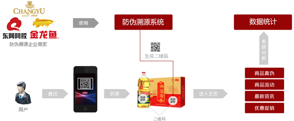 二维码防伪溯源是用二维码加密技术给产品做标识,同时也带动消费者积极参与到打假和共同监督商品安全问题中。同时切入防伪溯源+移动营销的概念,在追溯产品生产环节和销售地区的同时也可以了解企业其他产品信息,起到宣传企业的作用,加速企业品牌传播。