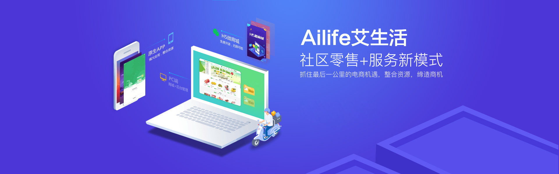 对艾生活到家H5微商城以及PC端授权商业运营、完成线上的完整终端覆盖