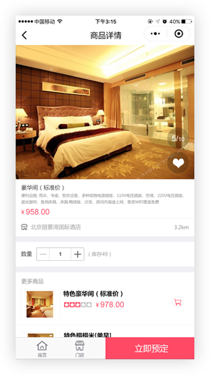 酒店小程序具有在线查询、预约订房、酒店直销平台等功能,搜索最近酒店在线预订,原声地图导航让客户离商家更近