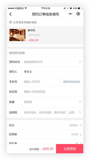 对于对外有餐饮服务的酒店,实现微信预约等餐饮行业功能