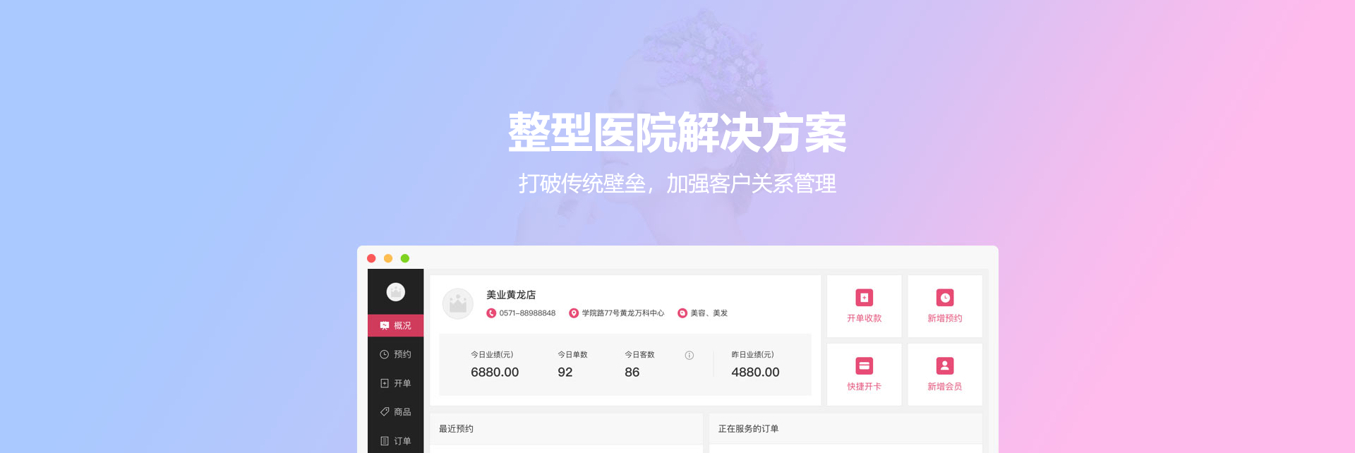 完成整个顾客消费周期管理的良性循环。同时与医院管理双向同步,打通渠道营销、财务结算、代理商绩效,确保各部门之间信息对称,规范企业经营模式