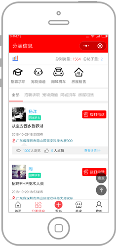 种类丰富,求购、租赁、房产、交友、二手货等,种类多样化