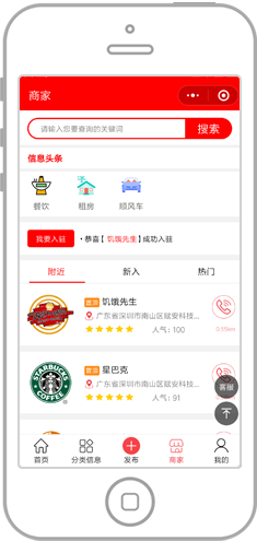 同城商家功能,商家可入驻平台获取流量
